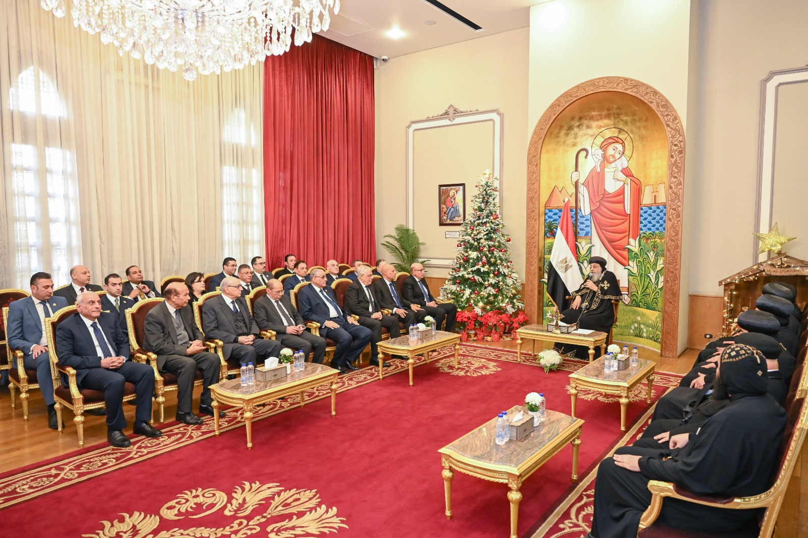 النائب العام ورئيس مجلس القضاء الأعلى يزوران البابا تواضروس للتهنئة بعيد الميلاد المجيد
