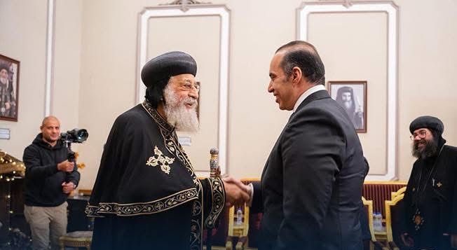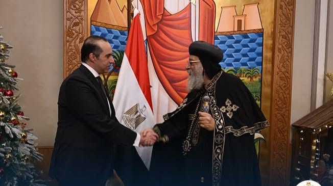قدم المستشار محمود فوزي، وزير الشؤون النيابية والقانونية والتواصل السياسي التهنئة بعيد الميلاد المجيد لقداسة البابا تواضروس الثاني، بابا الإسكندرية وبطريرك الكرازة المرقسية، وذلك اليوم الأحد، بمقر الكاتدرائية المرقسية بالعباسية.