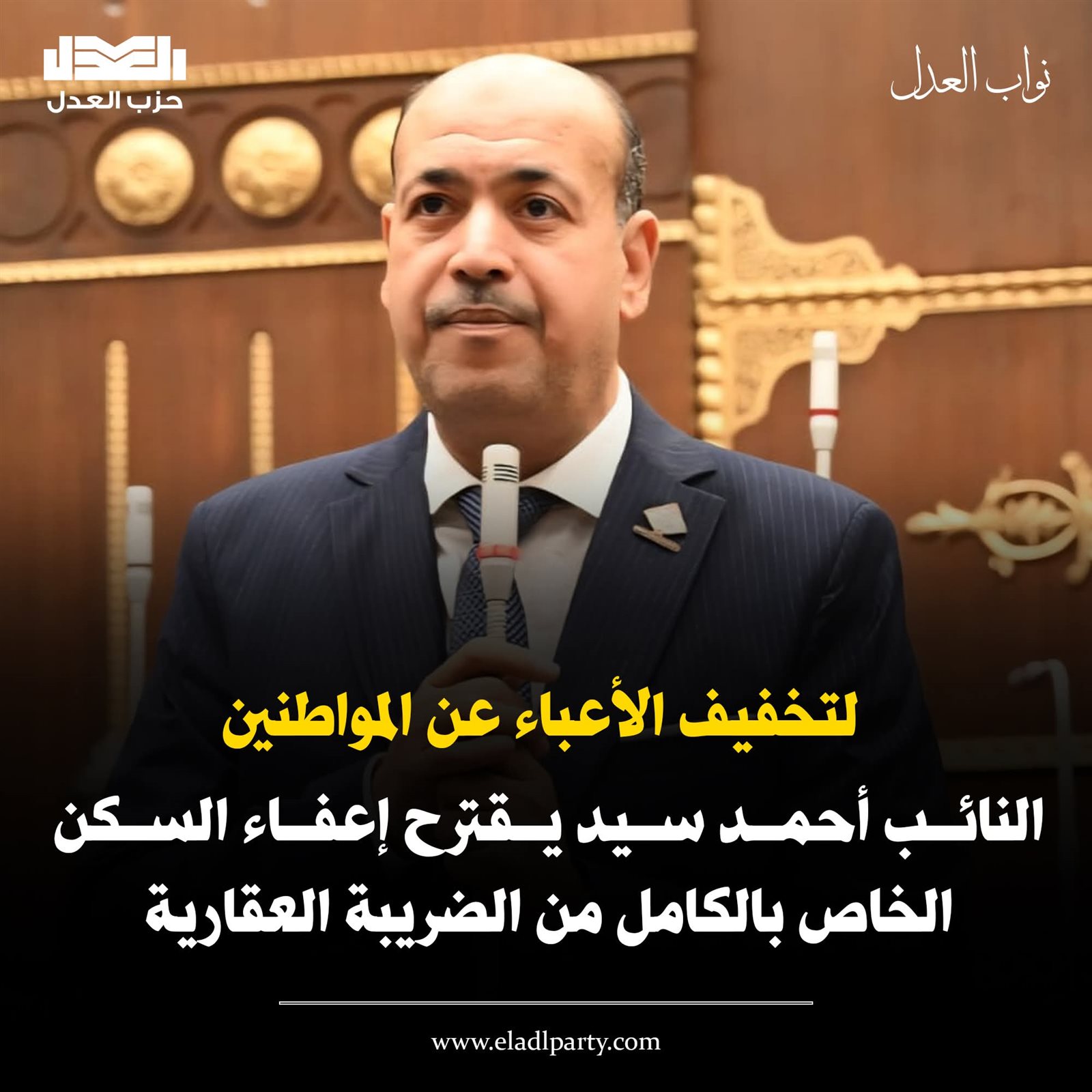 حزب العدل يقترح إعفاء السكن الخاص بالكامل من الضريبة العقارية لتخفيف الأعباء عن المواطنين