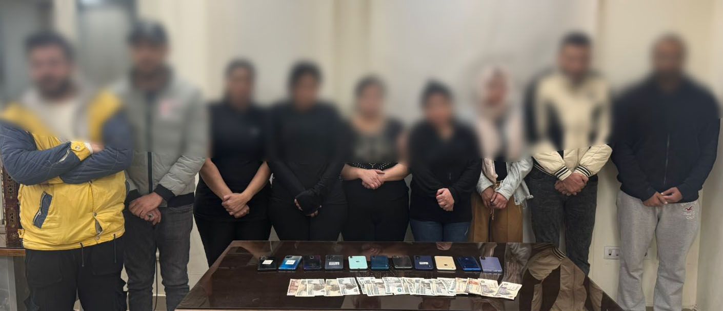 وعقب تقنين الإجراءات القانونية، تم استهداف المكان وضبط المتهم، وبصحبته خمس سيدات وثلاثة أشخاص، وبمواجهتهم أقروا بممارسة النشاط الإجرامي على النحو المشار إليه.