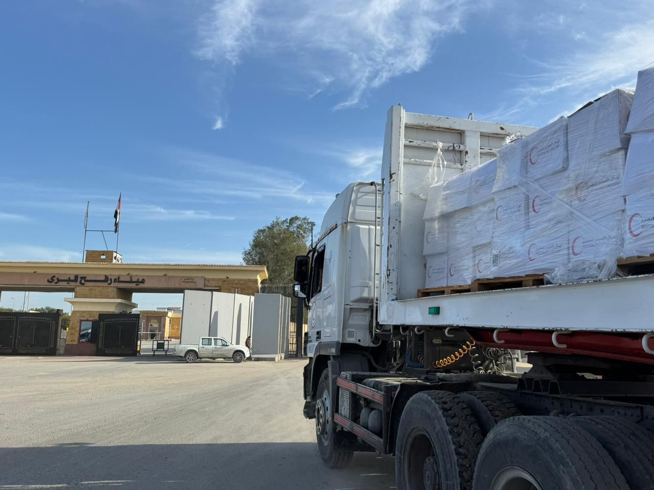 ويتواجد الهلال الأحمر المصري كآلية وطنية لتنسيق وتفويج المساعدات إلى غزة، على الحدود منذ بدء الأزمة حيث لم يتم غلق معبر رفح من الجانب المصري نهائيًا، وواصل تأهبه فى كافة المراكز اللوجستية وجهوده المتواصلة لدخول المساعدات التي بلغت أكثر من نصف مليون طن من المساعدات الإنسانية والإغاثة، وذلك بجهود 65 ألف متطوع بالجمعية.