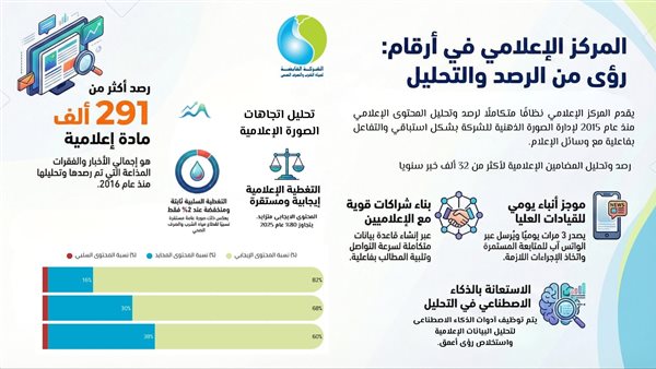 وشهد عام 2025 نشاطًا مكثفًا في مجال الرصد والتحليل الإعلامي، حيث واصل المركز الإعلامي أداء مهامه المتخصصة في متابعة ما يُنشر ويُذاع عن القطاع، وتحليل المضامين الإعلامية، وإعداد التقارير الدورية، وذلك امتدادًا لدوره الذي انطلق منذ تأسيسه عام 2007. وبلغ متوسط ما يتم رصده وتحليله سنويًا نحو 32 ألف خبر وفقرة إعلامية، بإجمالي تراكمي تجاوز 291 ألف خلال الفترة من 2016 وحتى 2025.