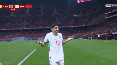 نجح براهيم دياز من تسجيل هدف التقدم لمنتخب المغرب في شباك الكاميرون في الدقيقة 27 من عمر الشوط الأول.