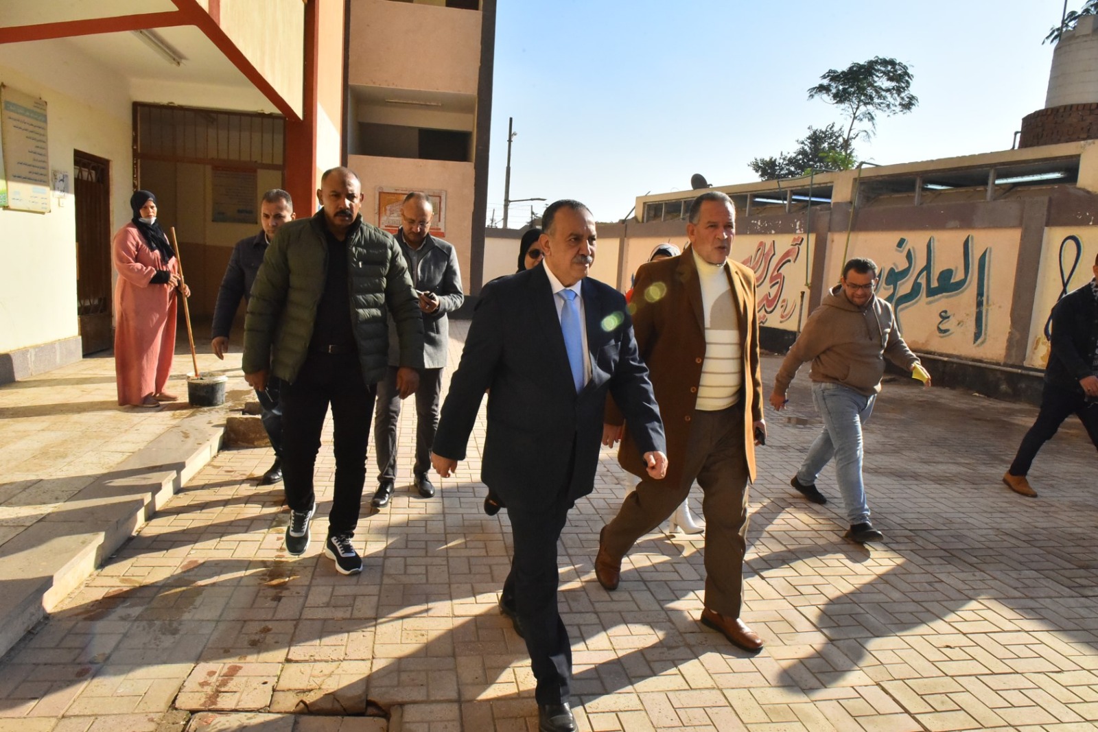 رافق المحافظ خلال الجولة كل من محمد إبراهيم الدسوقي، وكيل وزارة التربية والتعليم بأسيوط، وأبو العيون إبراهيم رئيس حي شرق، وحسن عثمان وكيل وزارة التضامن الاجتماعي والدكتورة منى أبو المواهب مدير إدارة التربية الخاصة بمديرية التربية والتعليم وأحمد ثابت المشرف العام على تطوير مدارس التربية الفكرية.