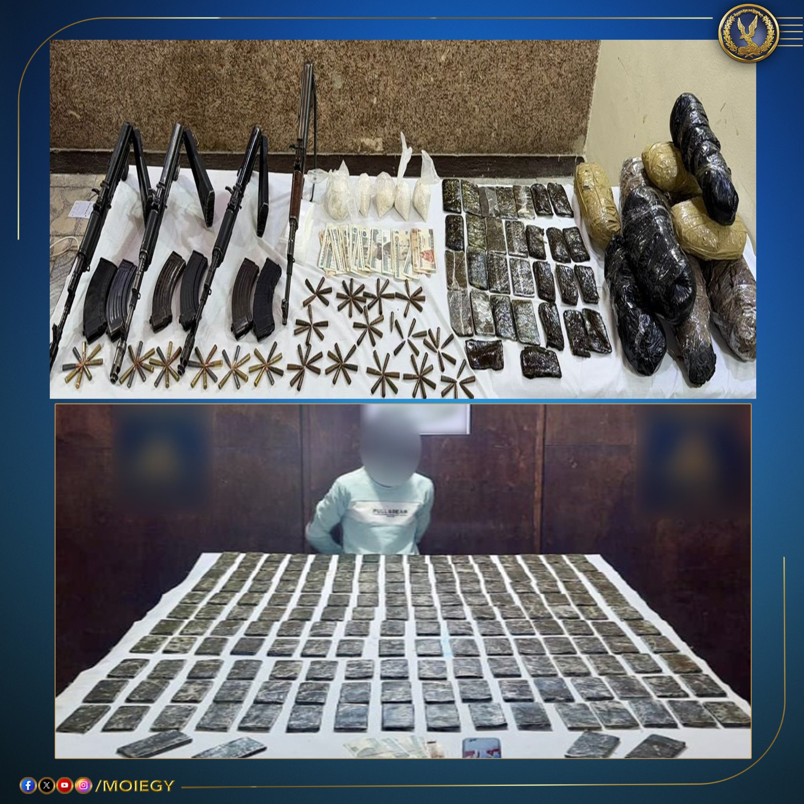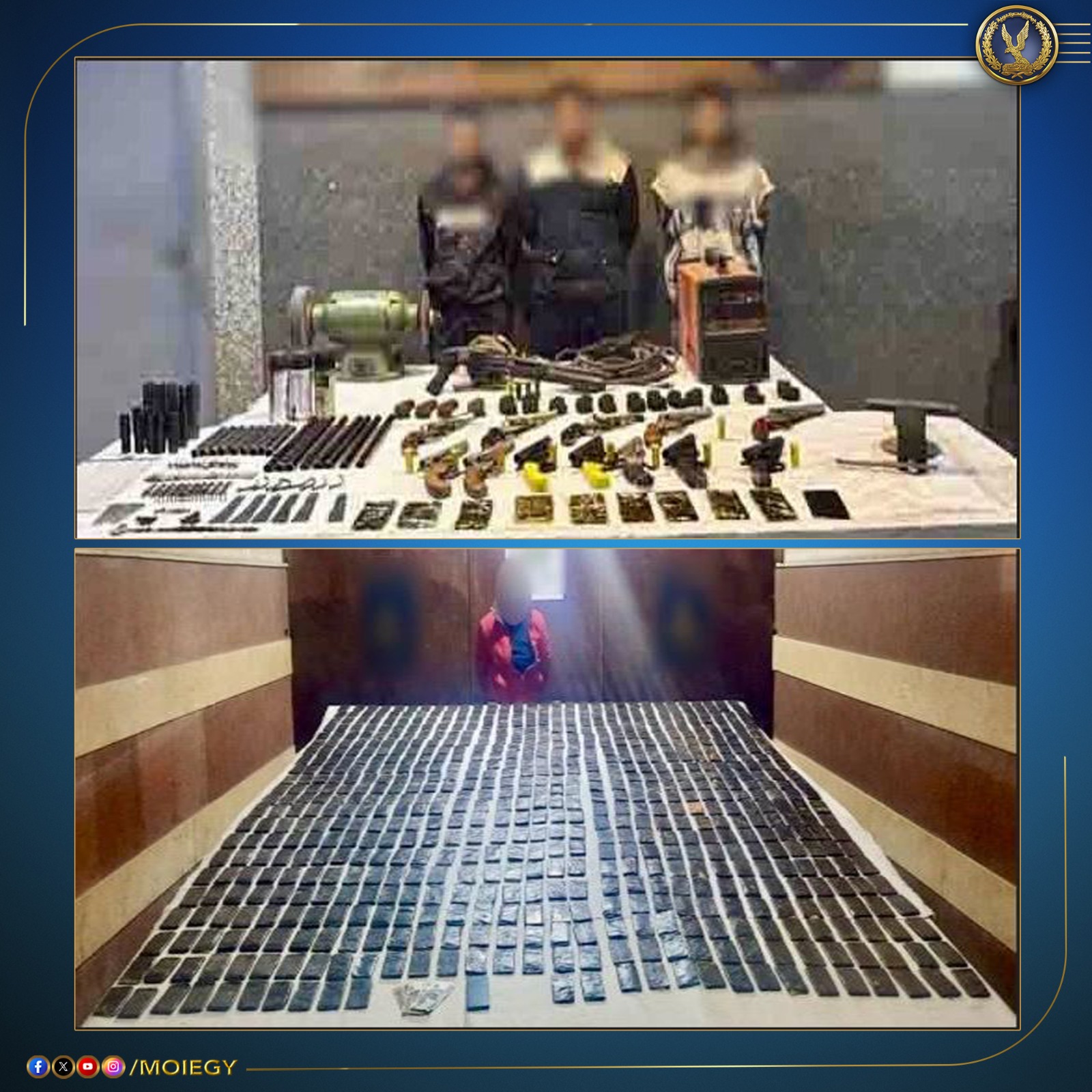 أكدت معلومات وتحريات قطاعى (الأمن العام - مكافحة المخدرات والأسلحة والذخائر غير المرخصة) بالتنسيق مع أجهزة الوزارة المعنية قيام بؤر إجرامية بنطاق عدد من المحافظات تضم (عناصر جنائية شديدة الخطورة) بجلب كميات من المواد المخدرة والأسلحة النارية غير المرخصة تمهيداً للإتجار بها.