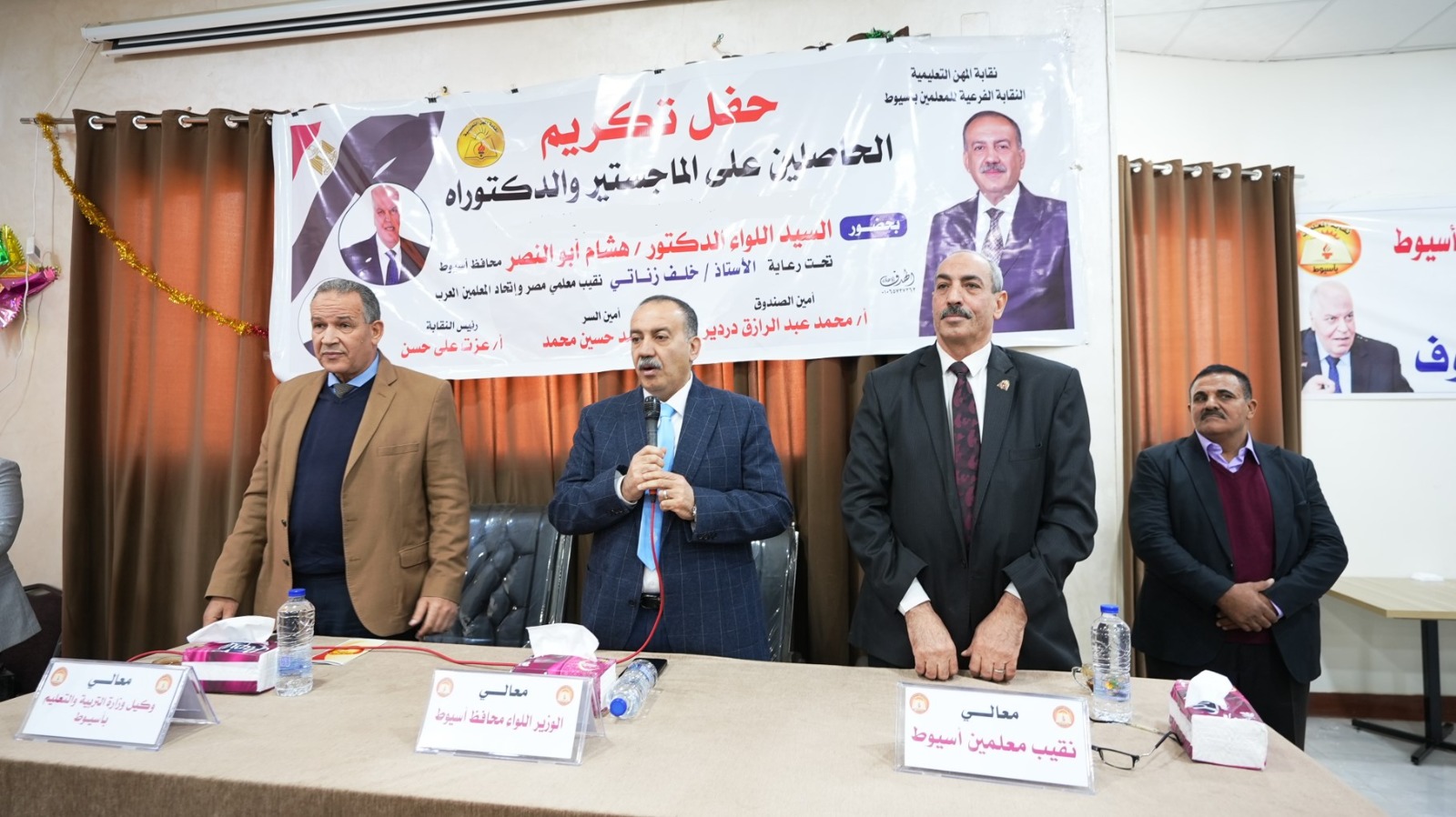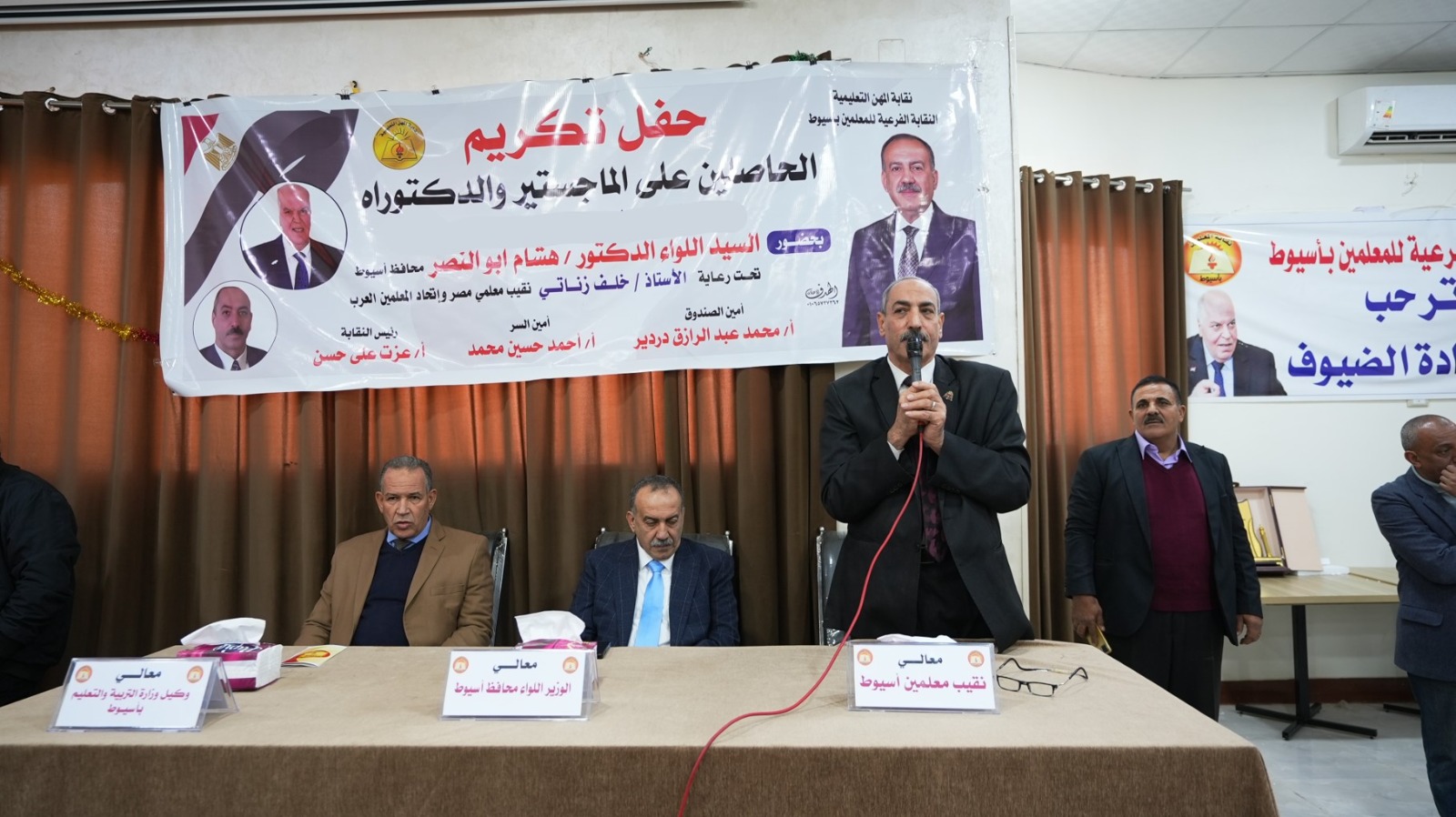 محافظ أسيوط يشهد احتفالية تكريم حاملي الماجستير والدكتوراه بقطاع التعليم في نقابة المعلمين