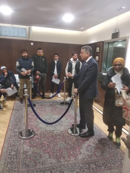 وقد استمع السيد السفير لملاحظات واستفسارات أبناء الجالية، حيث أوضح عدد منهم أنه على الرغم مما يلموسنه من الجهود التى تقوم بها السفارة لتطوير منظومة العمل القنصلى، وتسريع إنهاء كافة المعاملات الخاصة بهم إلا أنهم يرغبون في أن يتم اختصار المدة الزمنية التي تستغرقها بعض المعاملات القنصلية وأهمها إصدار جوار السفر ، كما طلبوا تدخل السفارة لمساعدتهم فى تقنين أوضاعهم القانونية.