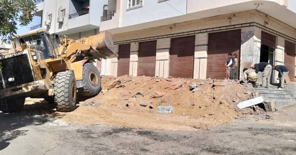 رئاسة حي جنوب الغردقة: إزالة بلكونة ورصيف تعدي علي حرم الطريق بالثلاثيني والذهبية