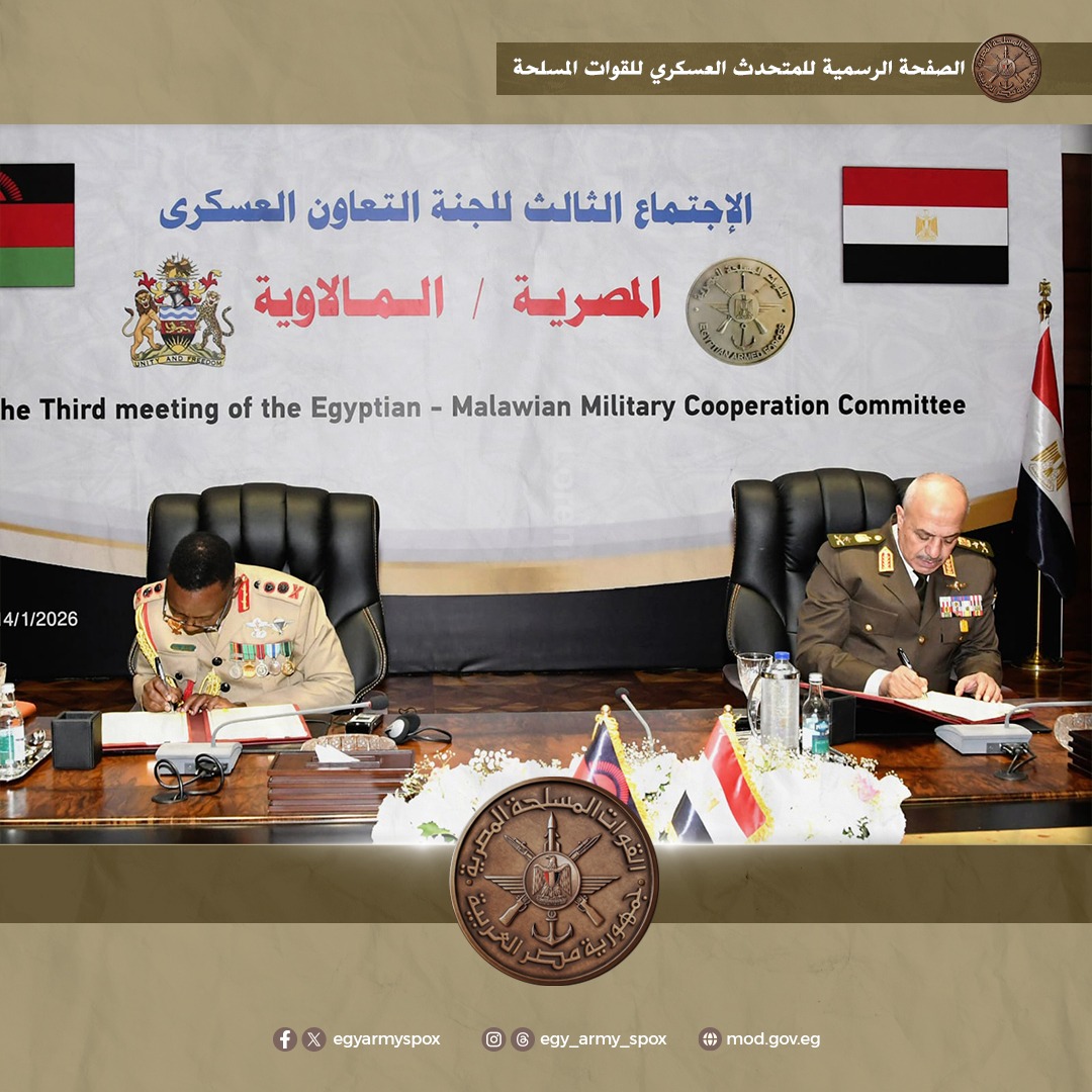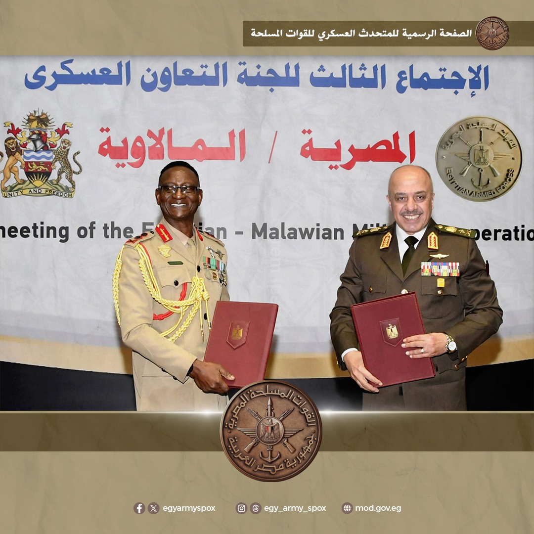 كما ترأس رئيس أركان حرب القوات المسلحة وقائد قوات الدفاع المالاوى الجلسة الختامية للإجتماع الثالث للجنة التعاون العسكرى المصرية / المالاوية وقاما بالتوقيع على محضر الجلسة الذى تضمن تنفيذ العديد من الأنشطة والتدريبات لدعم آفاق التعاون العسكرى بين البلدين.