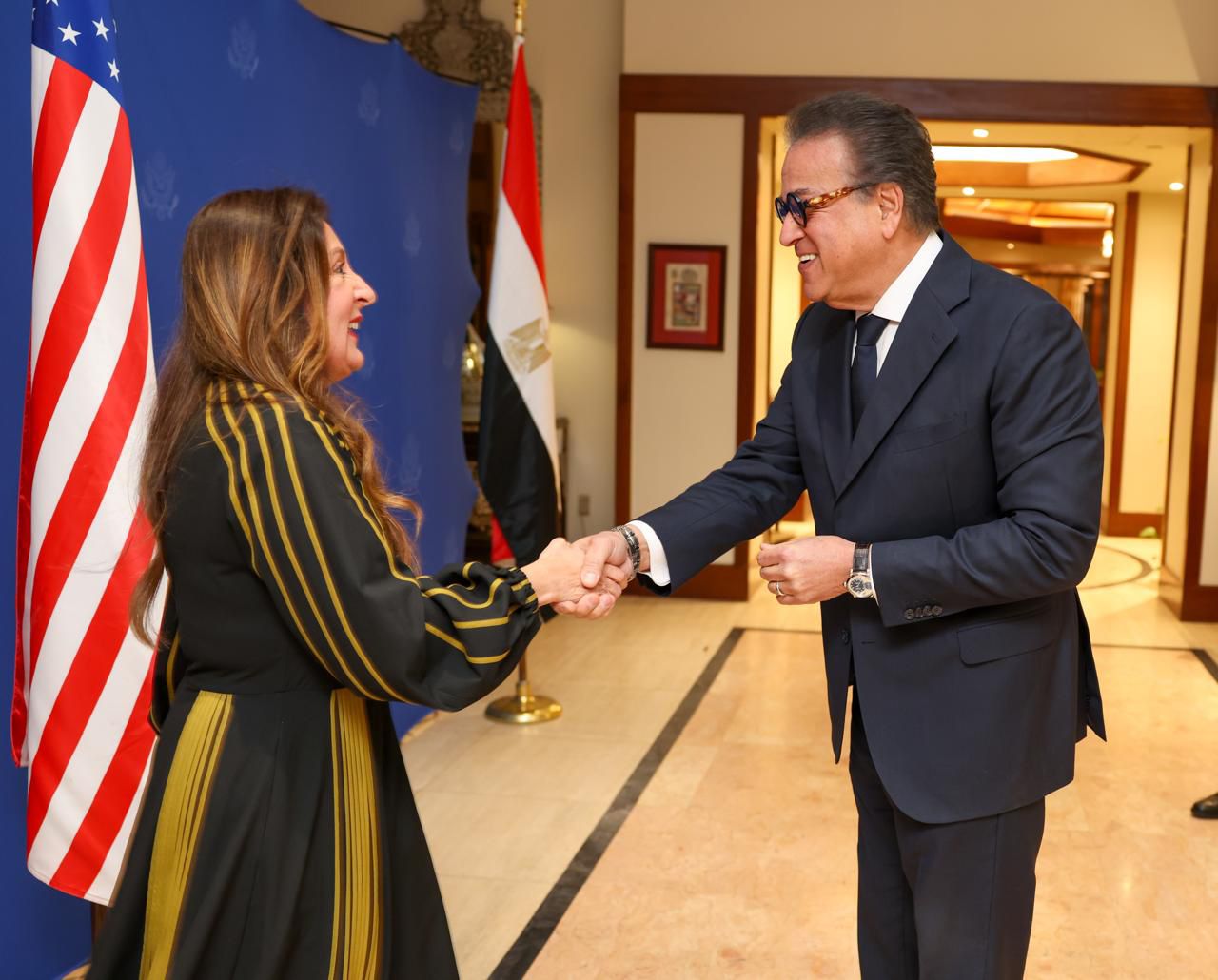 شهد الدكتور خالد عبدالغفار، نائب رئيس مجلس الوزراء للتنمية البشرية ووزير الصحة والسكان، احتفالية توديع السفيرة هيرو مصطفى غارغ، سفيرة الولايات المتحدة الأمريكية لدى مصر، بحضور عدد من الوزراء وكبار المسؤولين والدبلوماسيين، وذلك بمقر السفارة الأمريكية بالقاهرة.