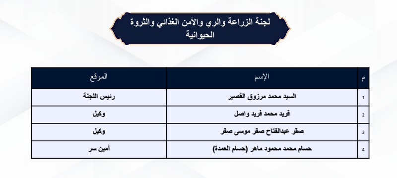 لجنة الزراعة والرى بمجلس النواب 2026.. تعرف على الرئيس والوكيلين وأمين السر