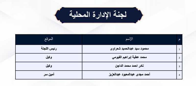 أسفرت انتخابات لجنة الإدارة المحلية بمجلس النواب عن فوز النائب محمود سيد عبدالحميد شعراوي بمنصب رئيس اللجنة، وفاز النائبان محمد عطية إبراهيم الفيومي، و نادر أحمد محمد الداجن بمقعدي الوكيلين، والنائب أحمد مجدي عبدالمعبود عبدالعزيز، بمقعد أمين السر.