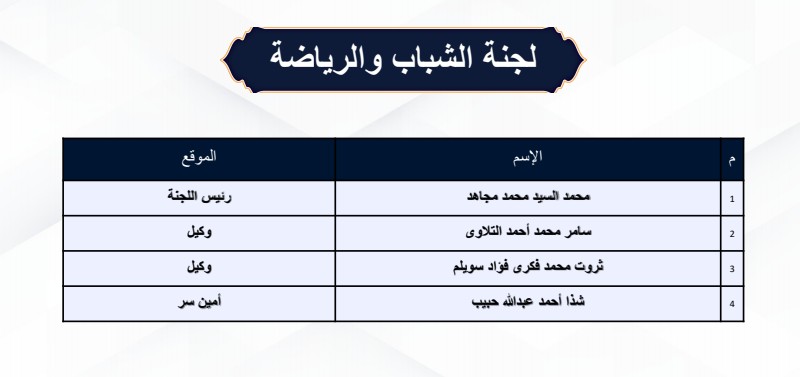 أسفرت انتخابات لجنة الشباب والرياضة بمجلس النواب عن فوز النائب محمد السيد محمد مجاهد بمنصب رئيس اللجنة، وفاز النائبان سامر محمد أحمد التلاوي، و ثروت محمد فكري فؤاد سويلم بمقعدي الوكيلين، والنائب شذا أحمد عبدالله حبيب، بمقعد أمين السر.