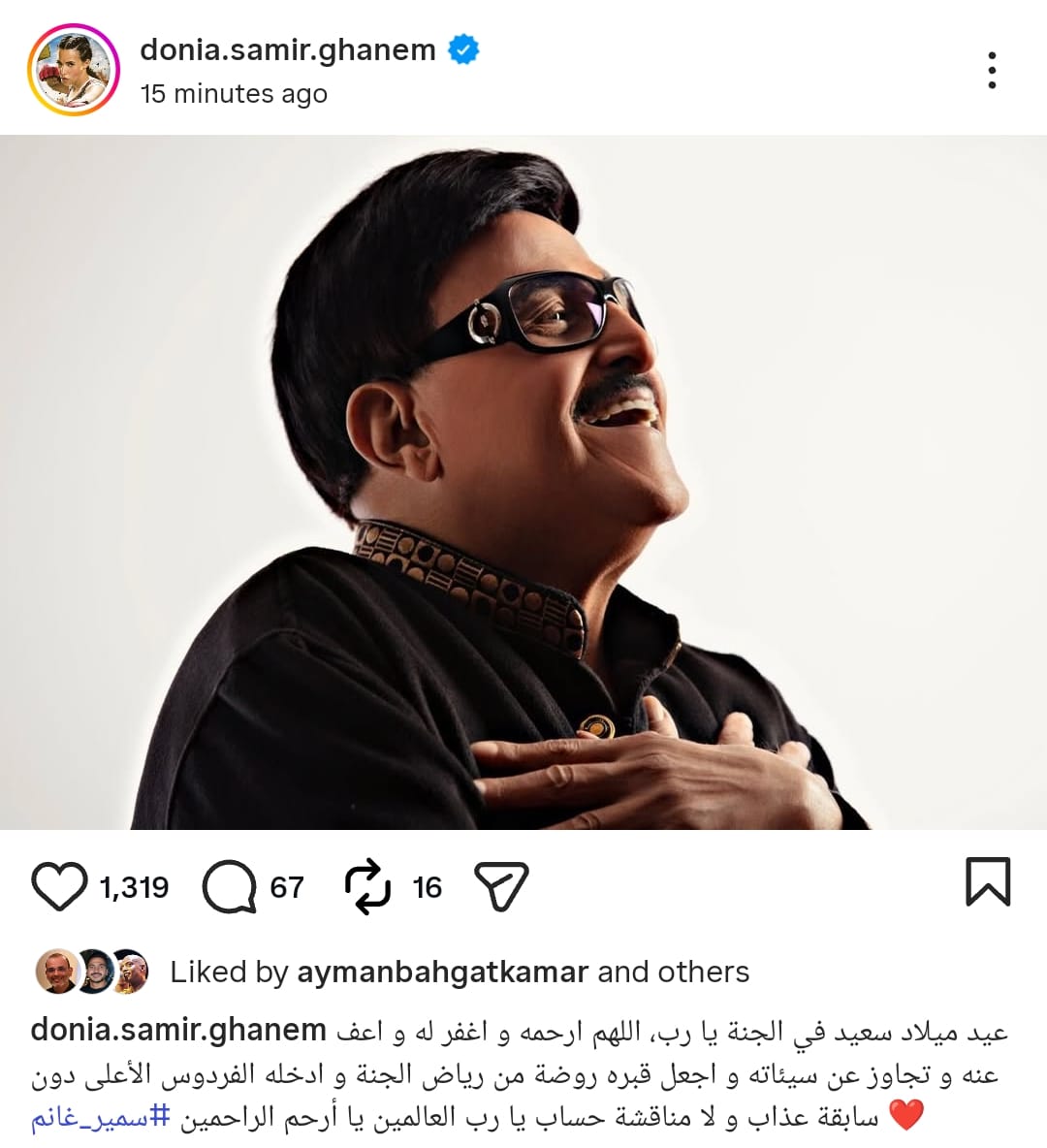 "عيد ميلاد سعيد في الجنة".. دنيا سمير غانم تحيي ذكرى ميلاد والدها بكلمات مؤثرة