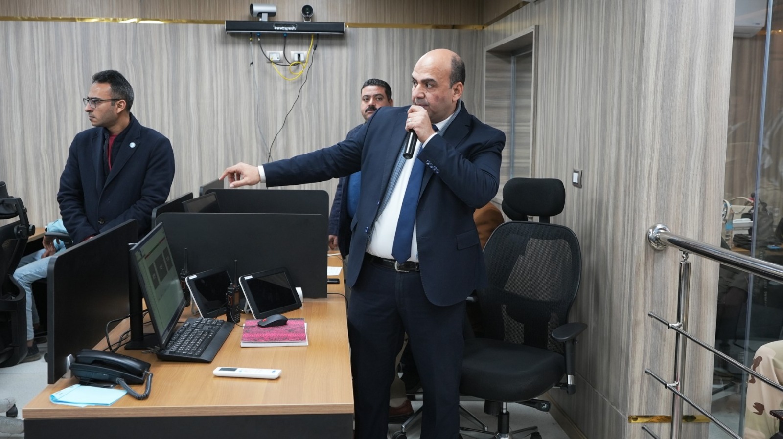 واستمعا إلى شرح مفصل من محمد حسين بمركز السيطرة حول آلية العمل، وخدمات الاتصالات المؤمنة التي توفرها الشبكة على مدار 24 ساعة، والإمكانات التقنية المتطورة من أجهزة تشغيل وربط Servers وسويتشات التي تضمن الاتصال الفوري بين المحافظة وكافة المديريات والهيئات والمرافق الحيوية، بما في ذلك مديرية الأمن والإسعاف والمرور.