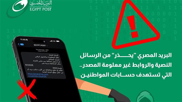ويدعو البريد المصري جميع المواطنين إلى توخي الحذر وعدم الانسياق وراء هذه المحاولات الاحتيالية، مع التأكيد على استمرار الهيئة في تطوير أنظمتها الأمنية لحماية عملائها، واتخاذ كافة التدابير القانونية اللازمة حيال القائمين على هذه المحاولات الاحتيالية لقيامهم بالنصب والاحتيال على المواطنين واختراق حساباتهم المالية وانتحالهم صفة مؤسسة حكومية والتحدث باسمها.