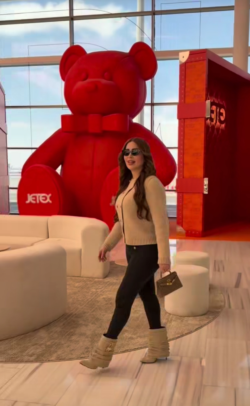 وتألقت نسرين طافش في مطار دبي، حيث شاركت جمهورها مقطع فيديو من خلال حسابها الرسمي عبر موقع تبادل الصور والفيديوهات القصيرة إنستجرام، وعلقت: دبي.. الرياض.