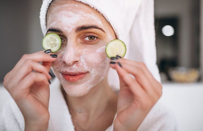 يتم بشر نصف حبة خيار، ثم يخلط لب الخيار المبشور مع نصف كوب من اللبن الرائب. يوضع هذا الماسك بلطف على بشرة الوجه والعنق، ويغسل بماء يميل للدفء بعد 20 دقيقة.