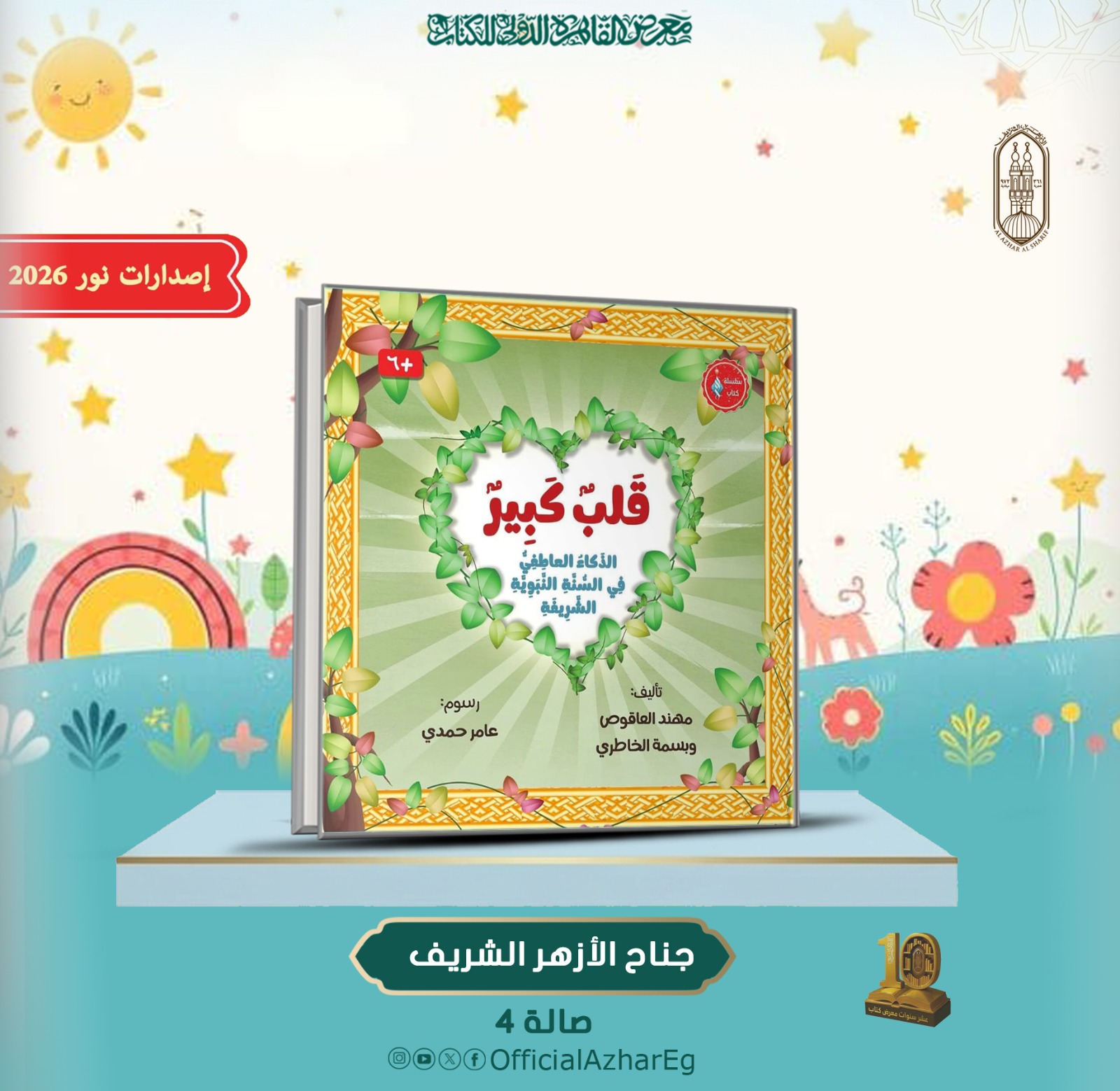 يقدِّم جناح الأزهر الشريف بمعرض القاهرة الدولي للكتاب، في دورته الـ 57، لزوَّاره من الأطفال والبراعم كتاب (قلب كبير "الذكاء العاطفي في السنة النبوية الشريفة")، من إصدارات سلسلة كتاب مجلة نور للأطفال الصادرة عن المنظمة العالمية لخريجي الأزهر.