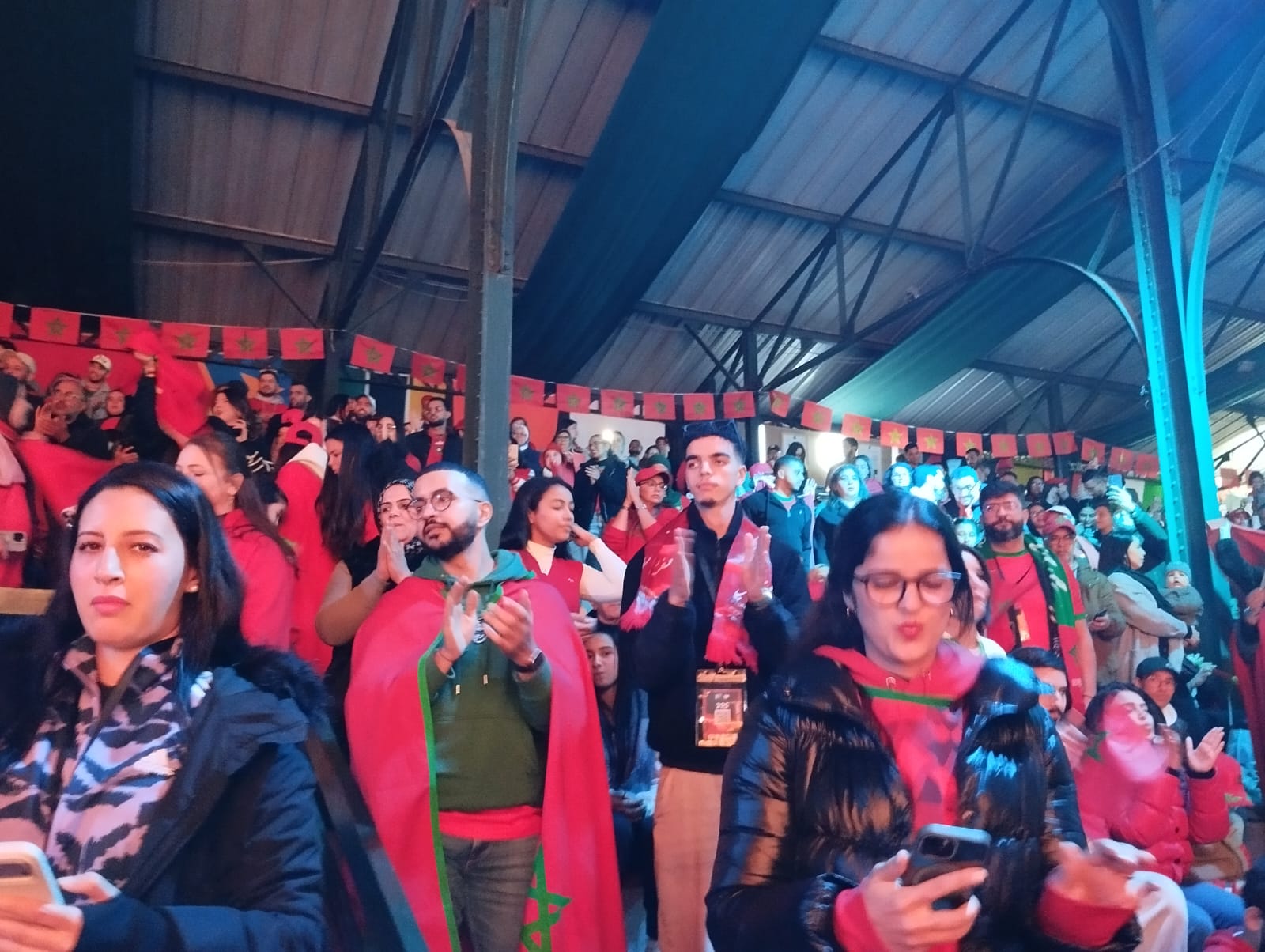كما عرفت القاعات المغلقة والأندية الرياضية والمقاهي إقبالًا كثيفًا، حيث امتلأت عن آخرها بالمشجعين الذين تابعوا المباراة بشغف كبير، تفاعلوا مع كل هجمة وكل فرصة سانحة للتسجيل. ولم تخلُ الأجواء من لحظات الترقب والتوتر، سرعان ما تتحول إلى فرح عارم مع كل لقطة إيجابية لصالح المنتخب المغربي.