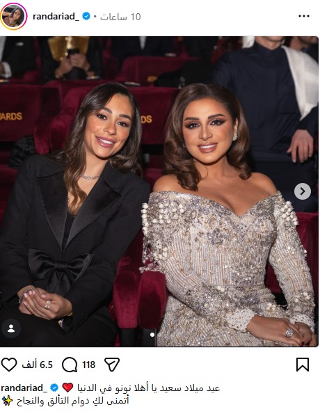 ونشرت راندا رياض صورا تجمعها بـ أنغام من خلال حسابها الرسمي عبر موقع تبادل الصور والفيديوهات القصيرة إنستجرام، وعلقت:عيد ميلاد سعيد يا أحلى نونو في الدنيا.. أتمنى لك دوام التألق والنجاح.