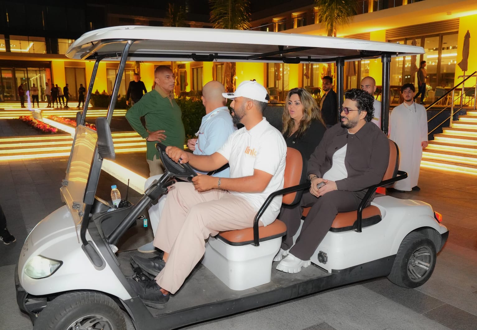 حضر مصطفي حجاج الحفل بصحبة مديرة أعماله ميرا أمير وكان في استقبالهما القائمين على الحفل بندر الحارثي وحسام خليل .