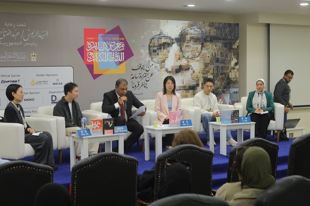 شهدت القاعة الدولية، ضمن فعاليات معرض القاهرة الدولي للكتاب، إقامة ندوة بعنوان «الأدب والإبداع الصيني في العصر الجديد»، أدارها الدكتور أحمد السعيد، رئيس مجموعة بيت الحكمة للثقافة، بمشاركة عدد من الكُتّاب والمبدعين الصينيين، وبحضور ممثلين عن قطاع النشر وحقوق الترجمة، في إطار تعزيز التبادل الثقافي والأدبي بين الصين والعالم العربي، وخاصة مصر.