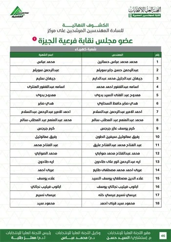 لجنة انتخابات المهندسين تعلن كشوف المرشحين.. و19 متقدما لمنصب النقيب العام