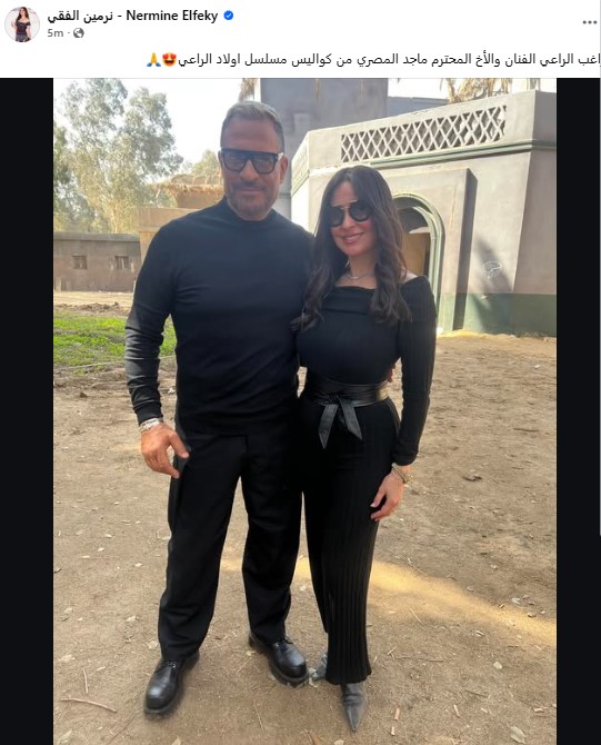 شاركت الفنانة نيرمين الفقي جمهورها كواليس جديدة تجمعها بالفنان ماجد المصري من مسلسل أولاد الراعي، الذي من المقرر عرضه ضمن مسلسلات رمضان 2026.