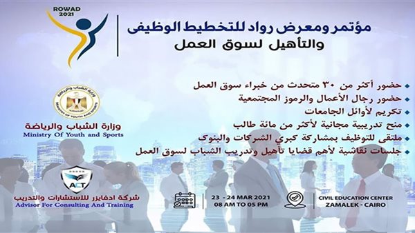 انطلاق مؤتمر ومعرض رواد 2021 للتخطيط الوظيفى والتأهيل لسوق العمل غدًا
