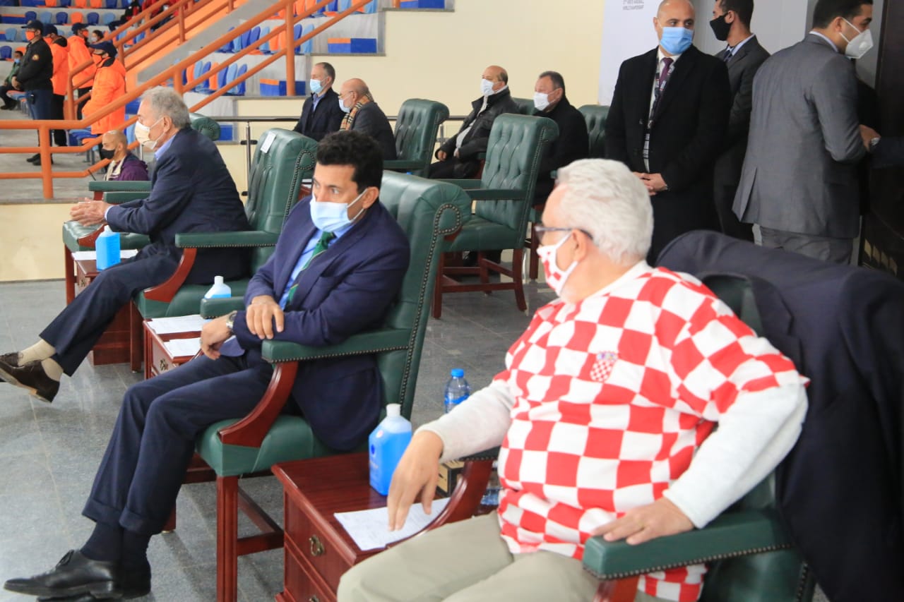 حديث جمع إيهاب جلال و كلا من محمد الشامي وعمر الوحش قبل انطلاق المران.
