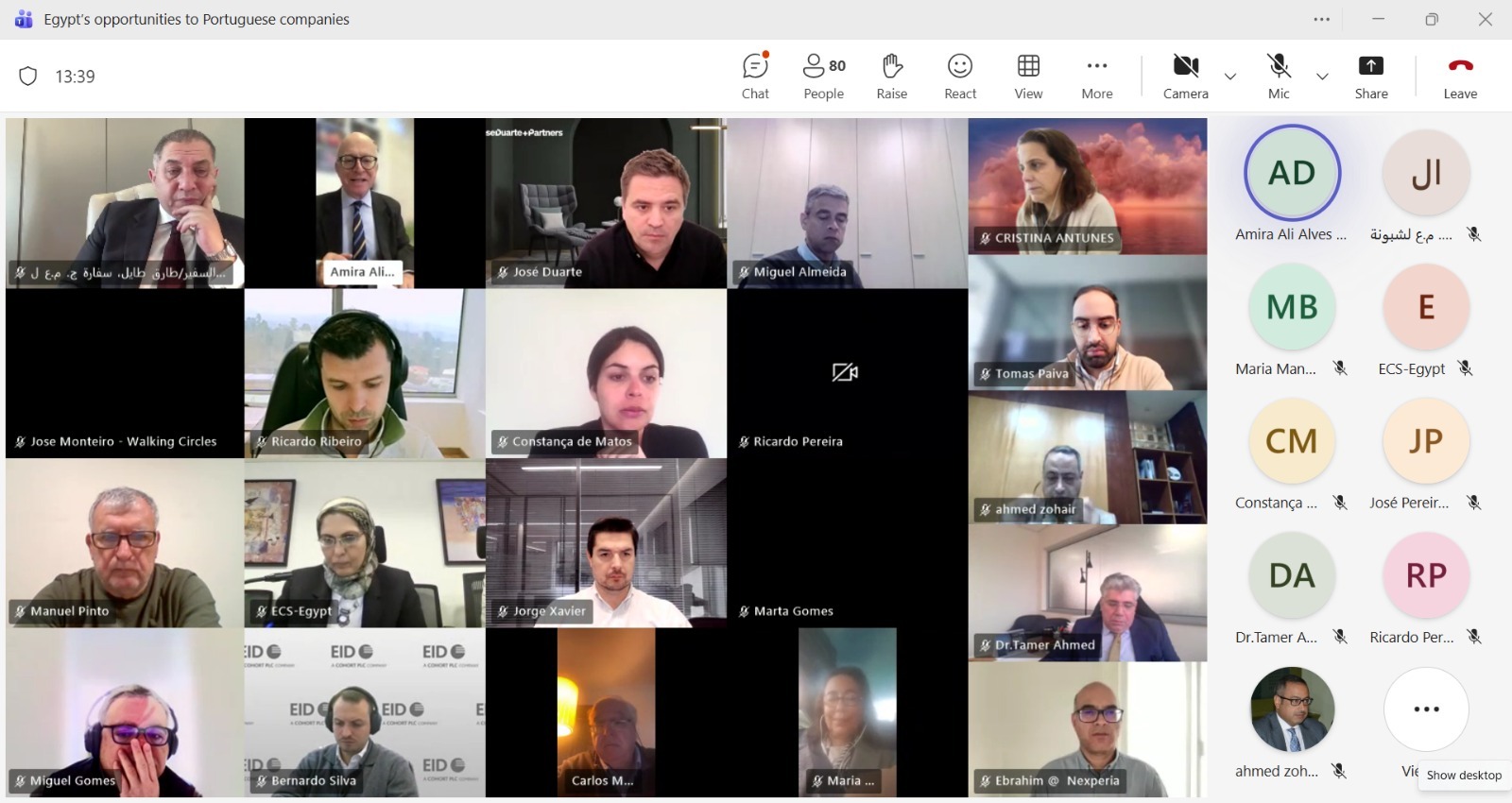 تنظيم الندوة الافتراضية الأولي بين مصر والبرتغال حول فرص الاستثمار والتجارة بين البلدين