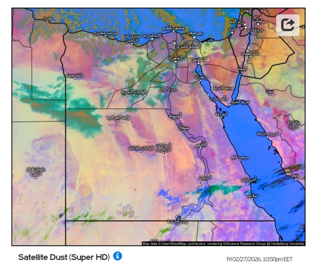 وتتوقع الهيئة العامة للأرصاد الجوية، أن يشهد غدا السبت 28 فبراير 2026، استمرار انخفاض درجات الحرارة ليسود يسود طقس شديد البرودة في الصباح الباكر، مائل للبرودة نهاراً على أغلب الأنحاء، شديد البرودة ليلاً، كما توجد فرص لتكون الصقيع على المزروعات في وسط سيناء.