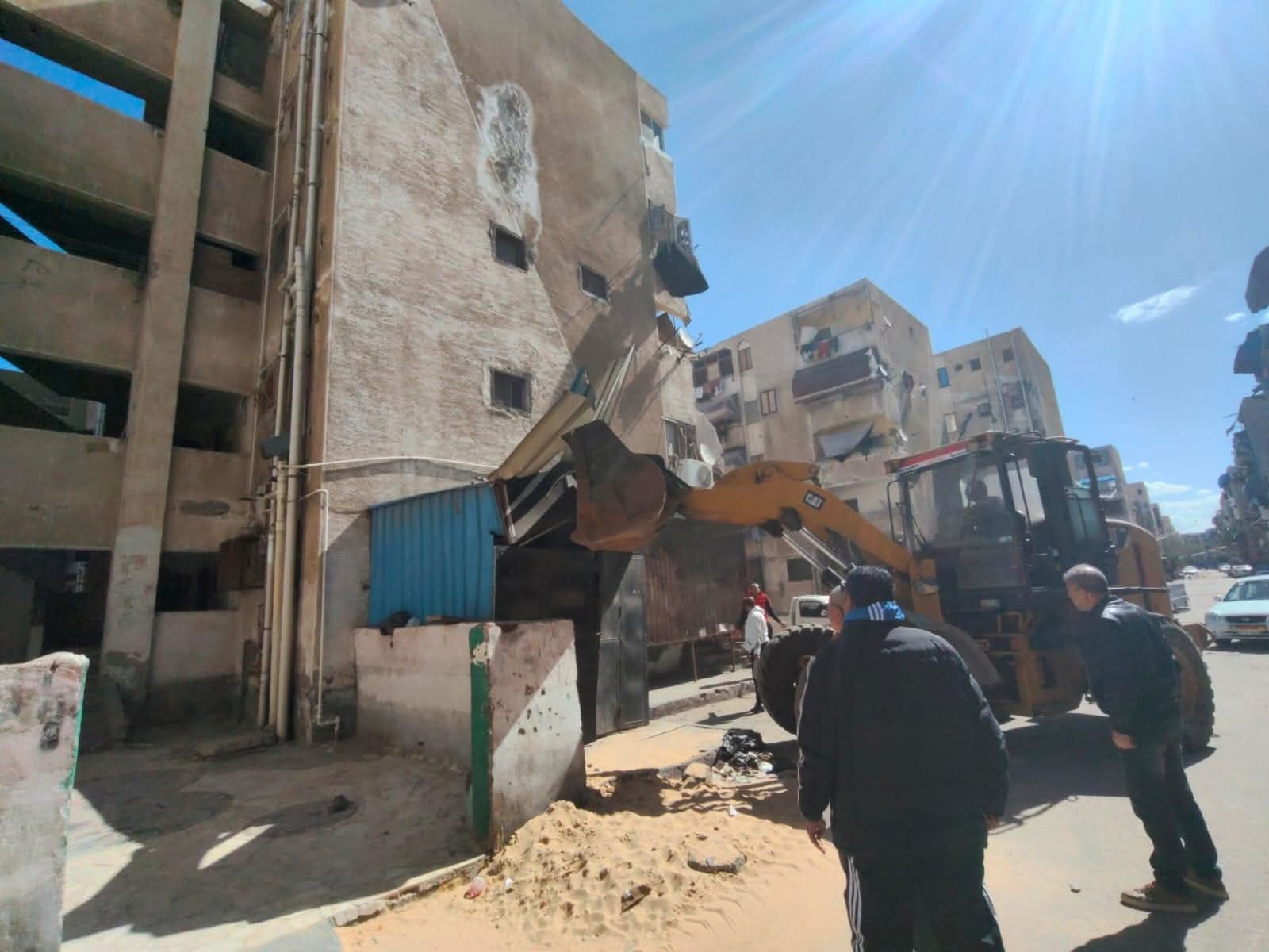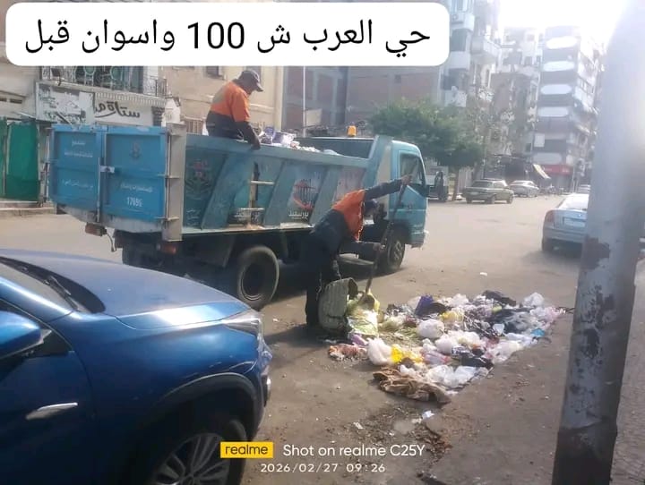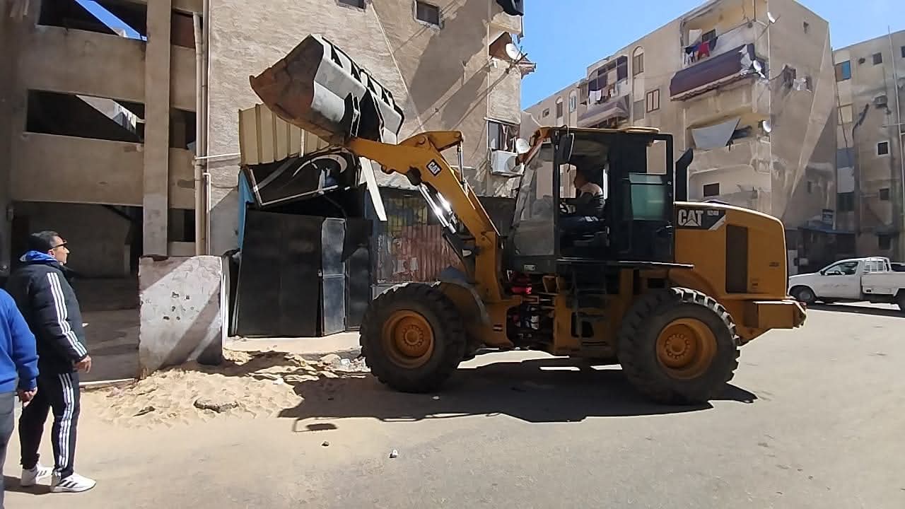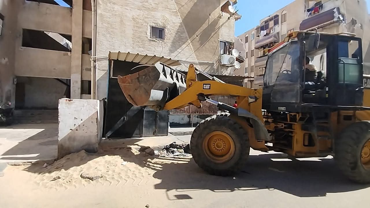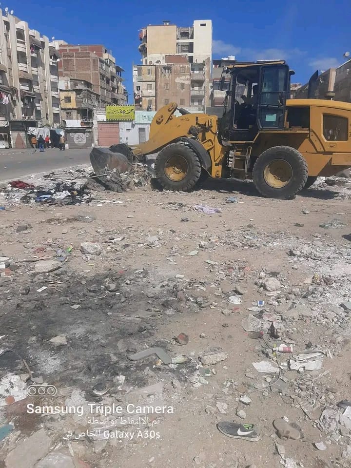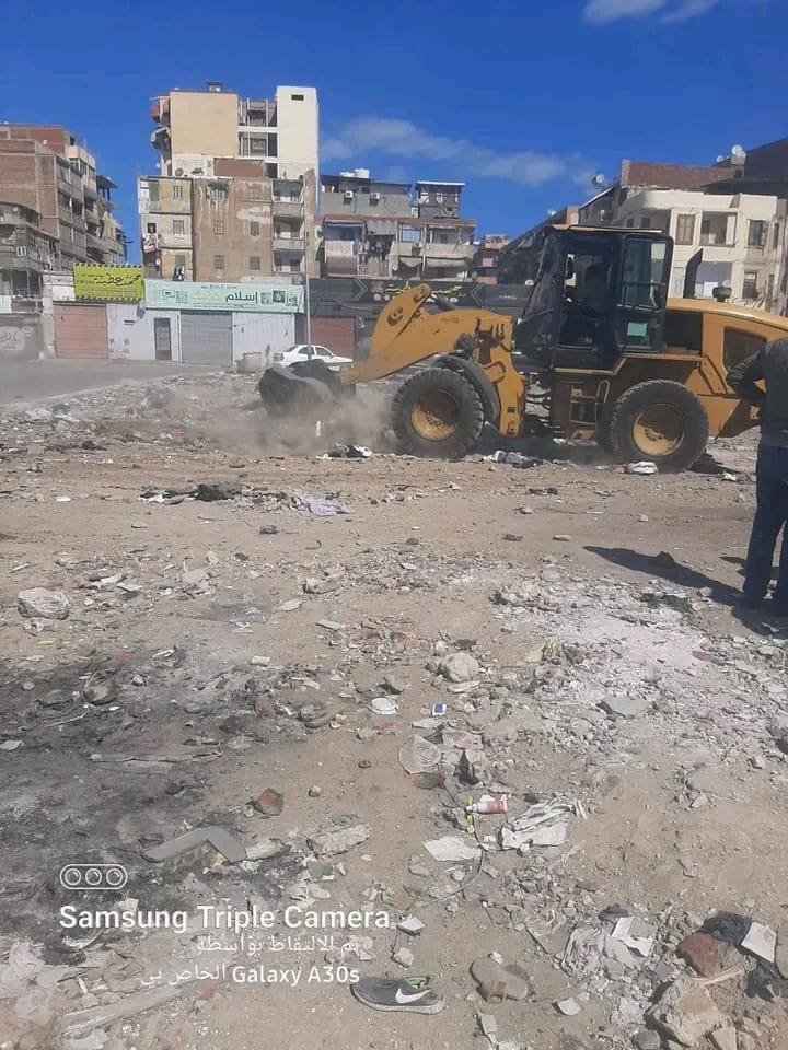 رفع التمركزات الرئيسية بالشوارع والمحاور و تنفيذ أعمال كنس وتجريف بمناطق العرب القديم، السلام تمليك، شارع العبور، الصباح، النصر، الكويت، وطرح البحر