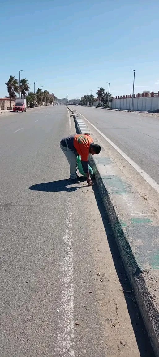 رفع تجمعات القمامة والمخلفات و تجريف الرمال المتراكمة بجوار الأرصفة