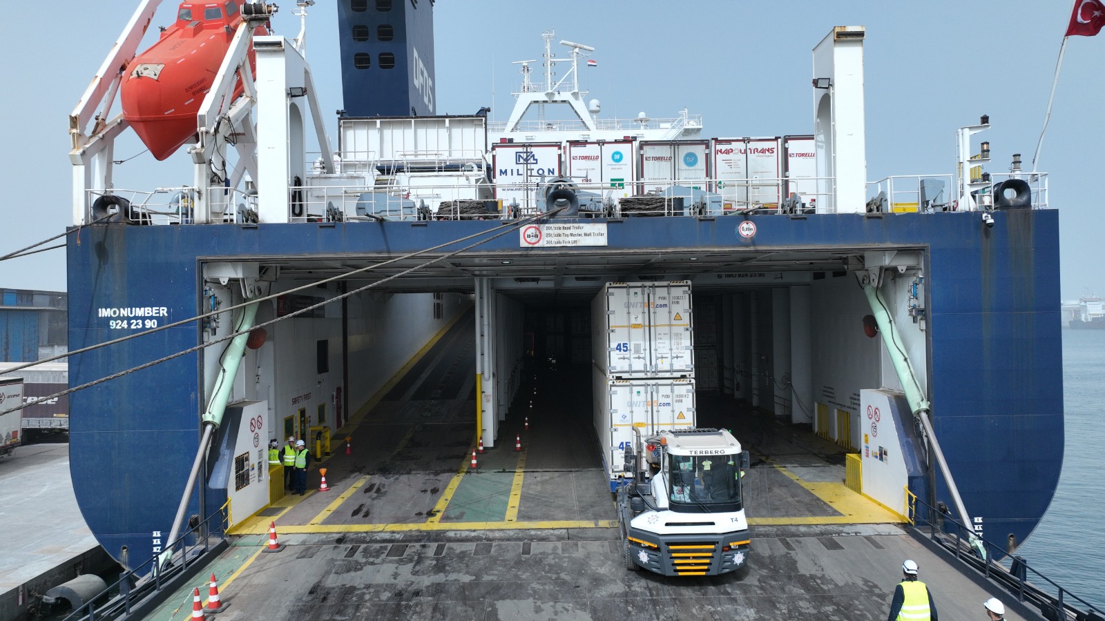 و أشار بيان وزارة النقل الى انه بعد ان تم إنضمام مصر لاتفاقة فيينا 1968 وفقا لقرار السيد / رئيس الجمهورية رقم 329 لسنة 2023 فقد تم القضاء على أي معوق خاص باللوحات المعدنية والرسوم و تم توقيع مذكرة التفاهم الحكومية للنقل البري كإطار لتنظيم حركة المركبات البرية الخاصة بالخط ، كما تم حل موقف اللوحات المعدنية مع تخصيص طاقم من وزارة الداخلية لسرعة تغييرها بمنفذ داخل ميناء دمياط وإعتماد مواصفات وسائل اطفاء الحريق الإيطالية ، بالإضافة الى انه قد تم تخفيض رسوم المرور على الطرق المصرية المنصوص عليها بالقرار رقم 278 لسنة 2017 الذي يقضي دفع 300 دولار أمريكي لكل تريلا وارد و 350 دولار أمريكي لكل تريلا صادر لتصبح الرسوم 100 دولار أمريكي الى جانب التنسيق مع إدارة الجوازات للسماح بخروج سائقين شاحنات أجنبية بشرط حصول السائقين على تأشيرة دول الإتحاد الأوروبى . وكذلك السماح بدخول/ خروج سيارات أجنبية بقيادة مالكها بشرط الحصول على تأشيرة دخول/ خروج لجمهورية مصر العربية مسبقاً.