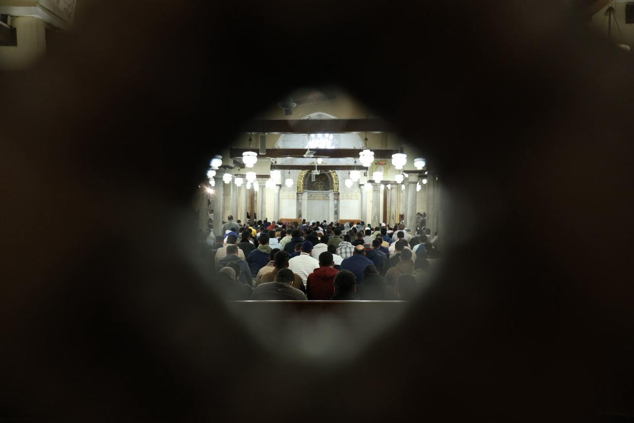 آلاف المصلين يؤدون صلاتي العشاء والتراويح في الليلة الثانية عشرة من رمضان بالجامع الأزهر