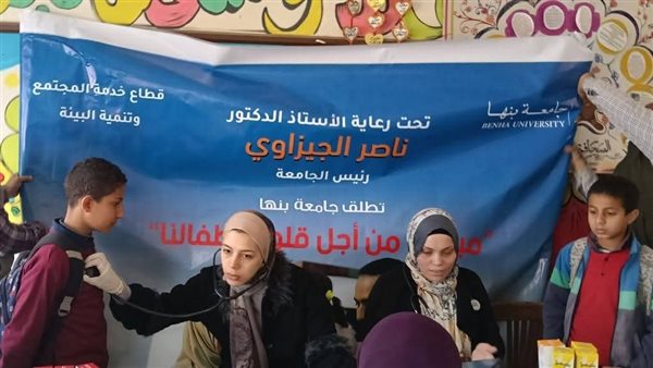 نظمت جامعة بنها قافلة طبية متخصصة بمدرسة التعليم الأساسي في كفر سندنهور ضمن فعاليات مبادرة " من أجل قلوب أطفالنا" لتوقيع الكشف الطبي على طلاب المدارس .