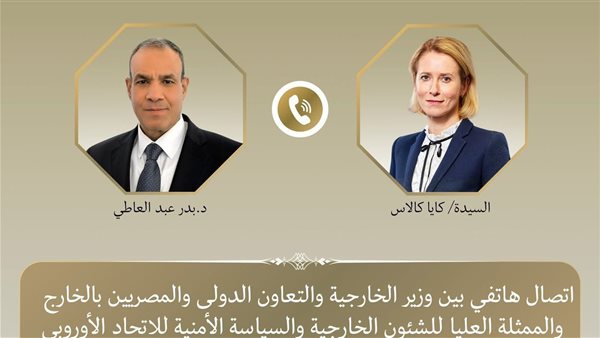 جرى اتصال هاتفي بين د. بدر عبد العاطي وزير الخارجية والتعاون الدولى والمصريين بالخارج والسيدة "كايا كالاس" الممثلة العليا للشئون الخارجية والسياسة الأمنية للاتحاد الأوروبي يوم الخميس ٥ مارس، حيث تناول الاتصال العلاقات المصرية - الأوروبية وكذلك التطورات الإقليمية المتسارعة.