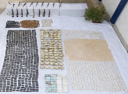 وعُثر بحوزتهم على 20 مليون قرص كبتاجون المخدر، 215 كيلو جرام من المواد المخدرة المتنوعة، 19 قطعة سلاح ناري "رشاش جرينوف، 16 بندقية آلية، بندقية قناصة، بندقية خرطوش"، كمية كبيرة من الطلقات النارية مختلفة الأعيرة.