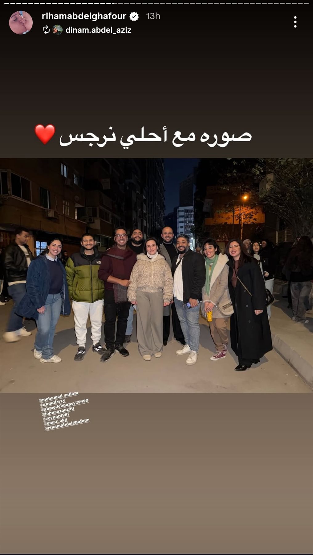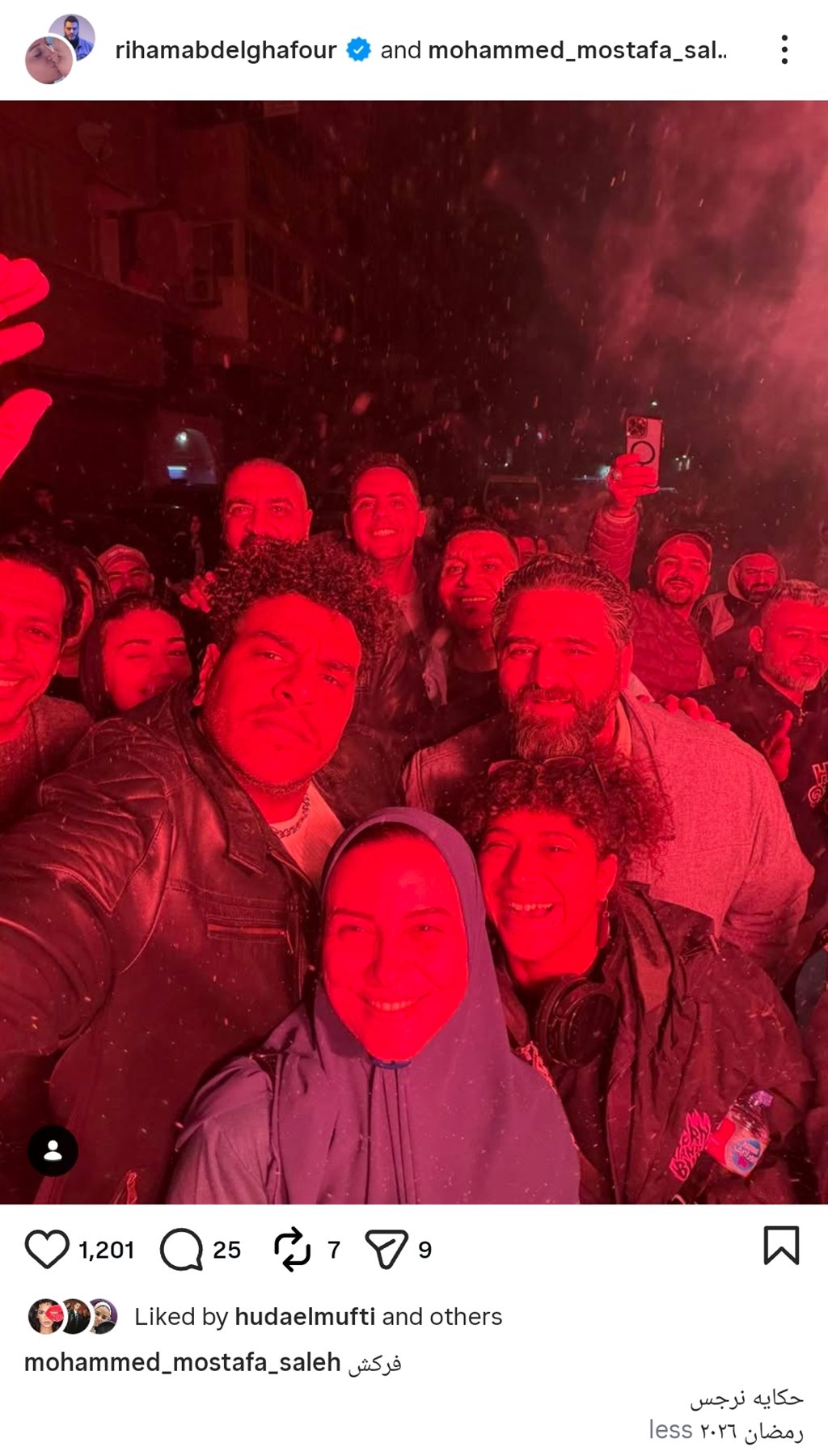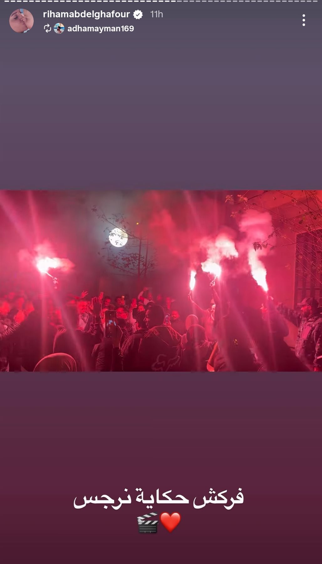 وشاركت ريهام عبد الغفور جمهورها صورا خلال احتفالها بالرقص والشماريخ برفقة أبطال العمل، وكتبت من خلال حسابها الرسمي عبر موقع تبادل الصور والفيديوهات القصيرة إنستجرام، قالت: فركش حكاية نرجس.. رمضان 2026.