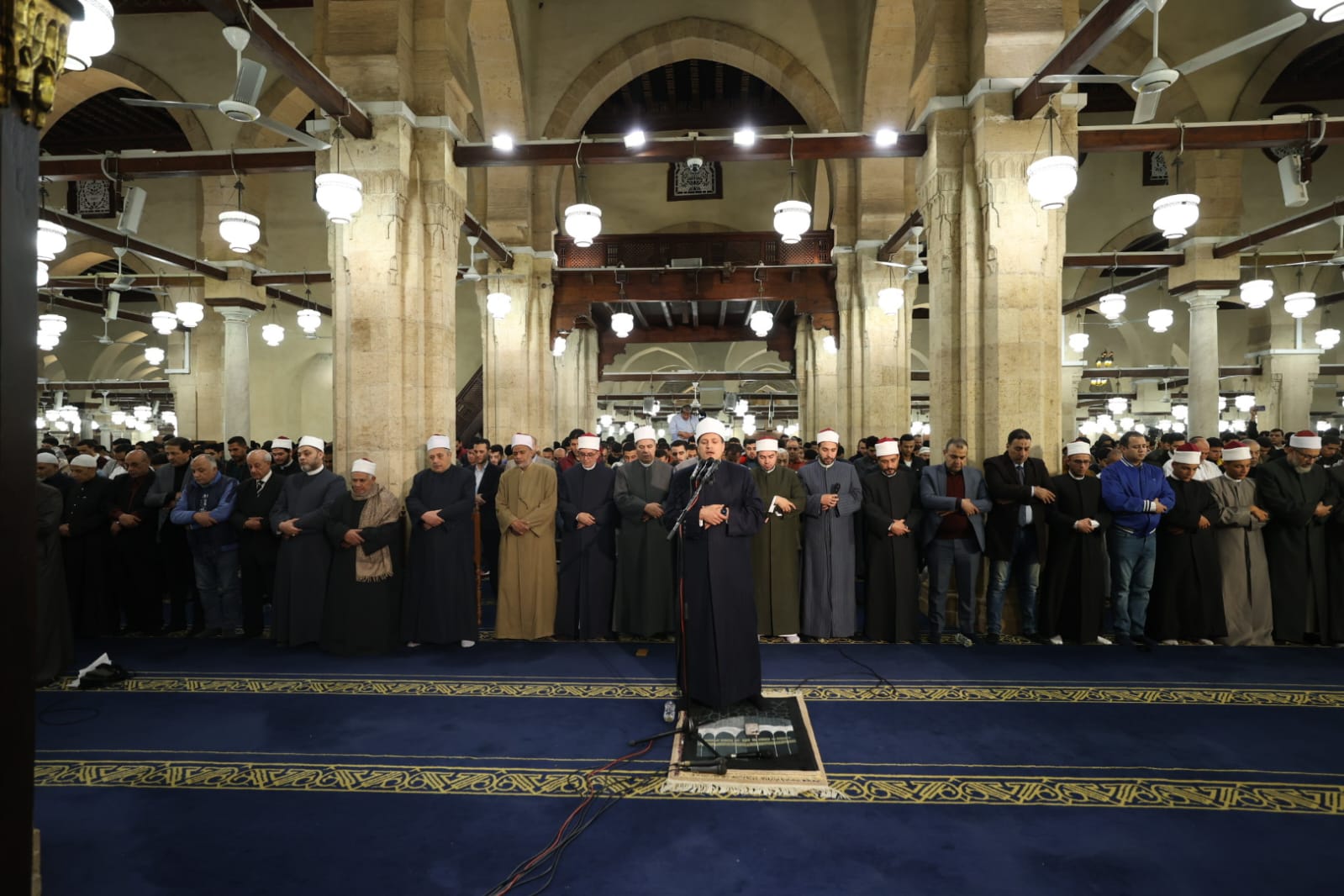 الآلاف يؤدون صلاتي العشاء والتراويح بالجامع الأزهر في الليلة العشرين من ليالي رمضان