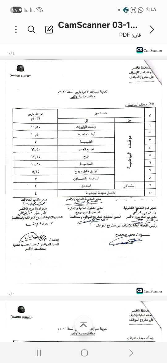 كما وجه بوضع استيكرات على سيارات السرفيس والأجرة توضح تعريفة الركوب وخط السير وعدد الركاب ويتم تثبيتها على الزجاج الأمامي والخلفي للسيارات بهدف تعريف المواطنين بالتعريفة الرسمية وضمان التزام السائقين بها.