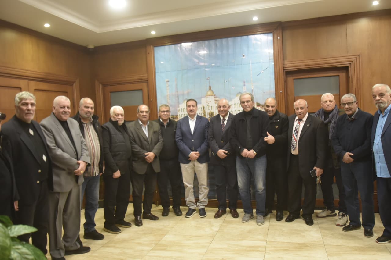 محافظ بورسعيد يستقبل قدامى لاعبي النادي المصري ويشيد بتاريخهم الرياضي