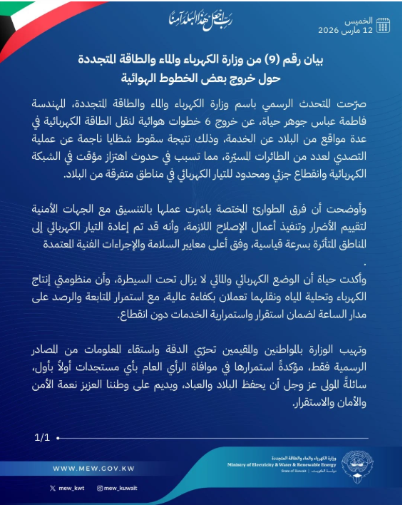 بيان وزارة الكهرباء الكويتية