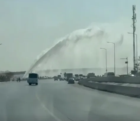 تعطلت حركة المرور أعلى طريق الواحات أمام مدخل زويل بمدينة 6 أكتوبر عقب انفجار خط مياه كبير، بجوار الطريق السريع، وارتفعت المياه إلى السماء ما أدى إلى تكدس السيارات وحدوث كثافات مرورية.