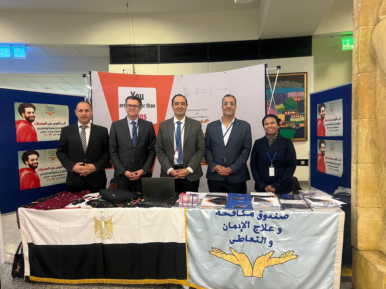 وكان الدكتور عمرو عثمان مدير صندوق مكافحة وعلاج الإدمان والتعاطي والسفير محمد نصر سفير مصر لدى النمسا والمندوب الدائم لدى الأمم المتحدة والمنظمات الدولية في فيينا قد افتتحا معرض الصندوق بمقر منظمة الأمم المتحدة بفيينا، بحضور اللواء مفيد فوزى مدير الإدارة العامة لمكافحة المخدرات .
