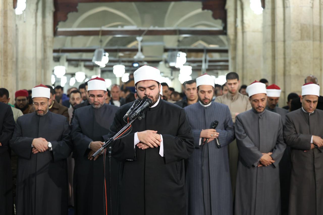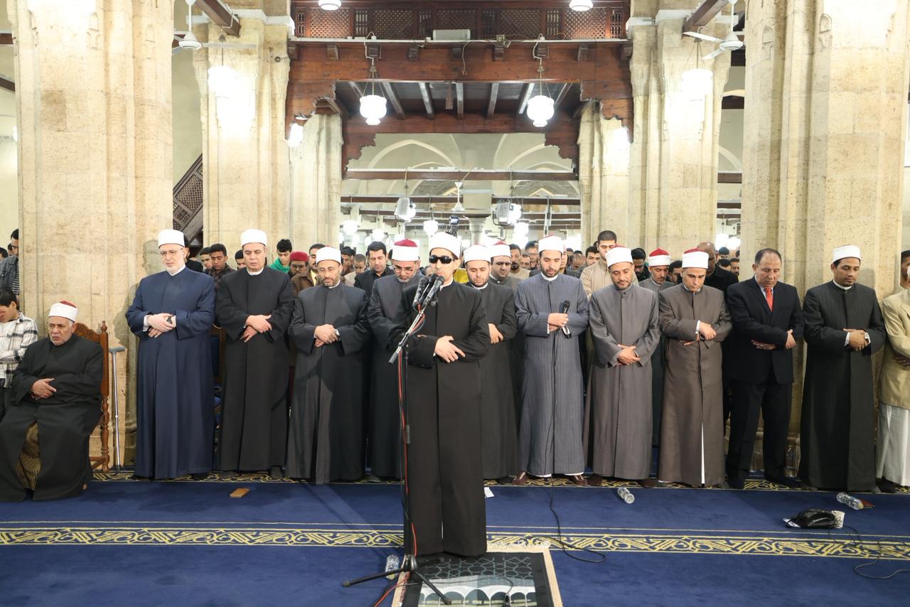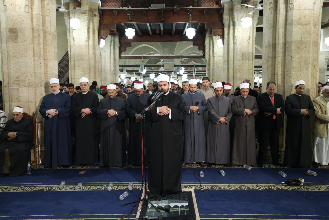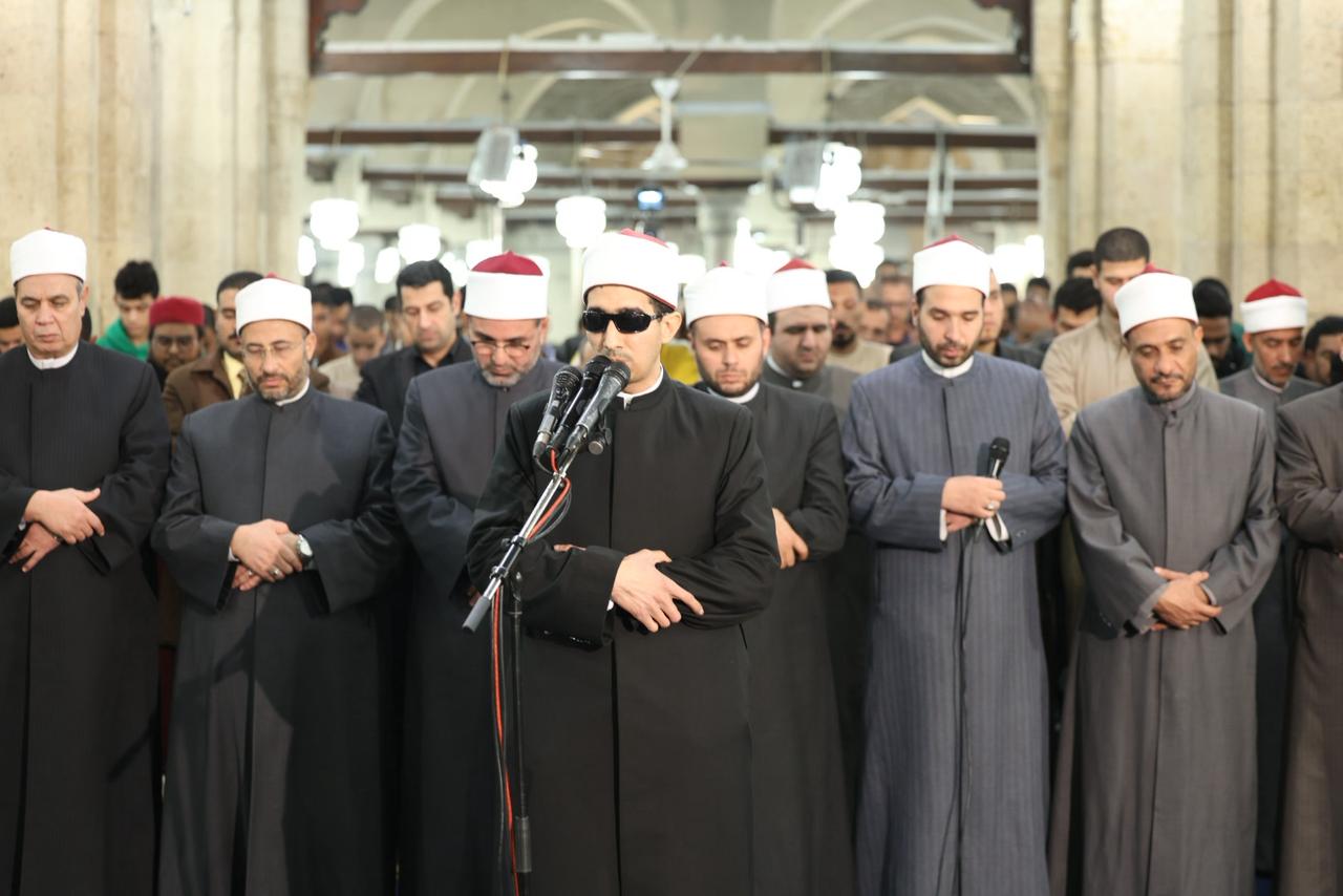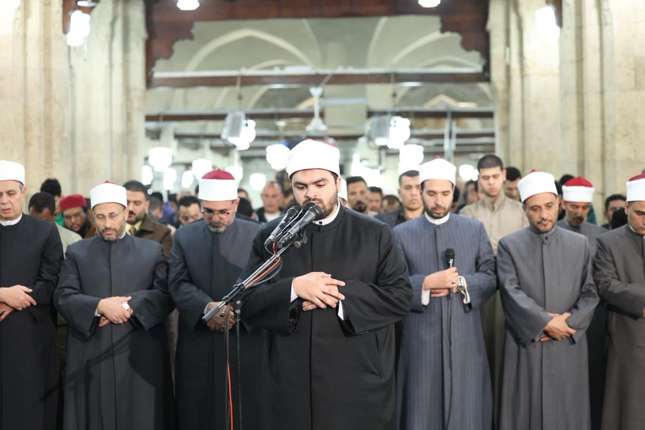 وأمَّ المصلين في صلاة العشاء الشيخ سمير زيدان، قارئًا برواية حفص عن عاصم من سورة الزمر، فيما أمَّ المصلين في صلاة التراويح الشيخ محمد عبدالنبي جادو، برواية إسحاق عن خلف العاشر، من سورة الزمر، وشاركه في الإمامة الشيخ محمد علاء الدين، برواية أبوالحارث عن الكسائي الكوفي، من سورة غافر، وشاركهما الدكتور محمود عزازي، برواية رويس عن يعقوب الحضرمي، من سورة غافر، فيما صلى الشفع والوتر الشيخ محمد عبدالجواد، في مشهد يعكس عناية الأزهر الشريف بإحياء سنة القراءات القرآنية المتواترة وإتاحة الفرصة للقراء الشباب للمشاركة في إمامة المصلين.