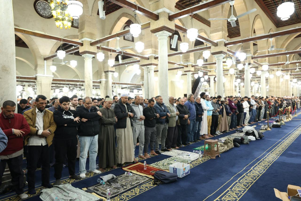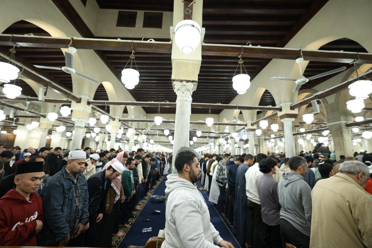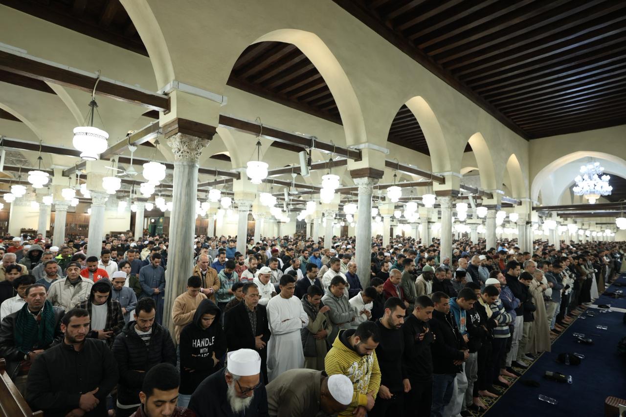 شهد الجامع الأزهر في الليلة الرابعة والعشرين من شهر رمضان المبارك توافدًا كبيرًا من جموع المصلين الذين ملأوا أروقته التاريخية وساحاته العامرة منذ وقت مبكر، في أجواء إيمانية مهيبة تعكس مكانة الجامع الأزهر كقبلةٍ للعلم والعبادة ووجهةٍ للمسلمين من مختلف دول العالم والمحافظات خلال شهر رمضان المبارك، حيث حرص المصلون على اغتنام هذه الليالي المباركة من العشر الأواخر، رجاءً لنفحات الرحمة والمغفرة والعتق من النيران.