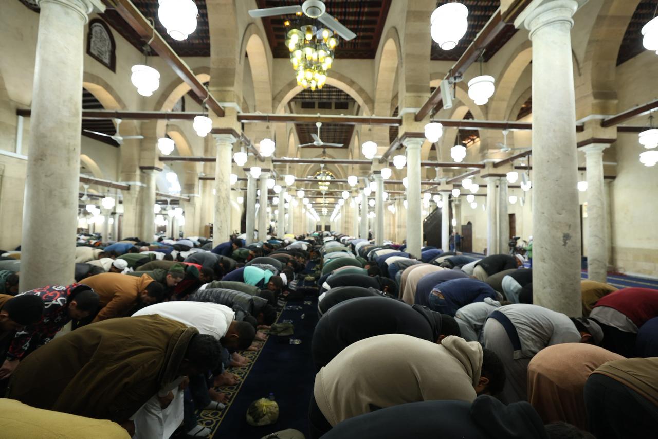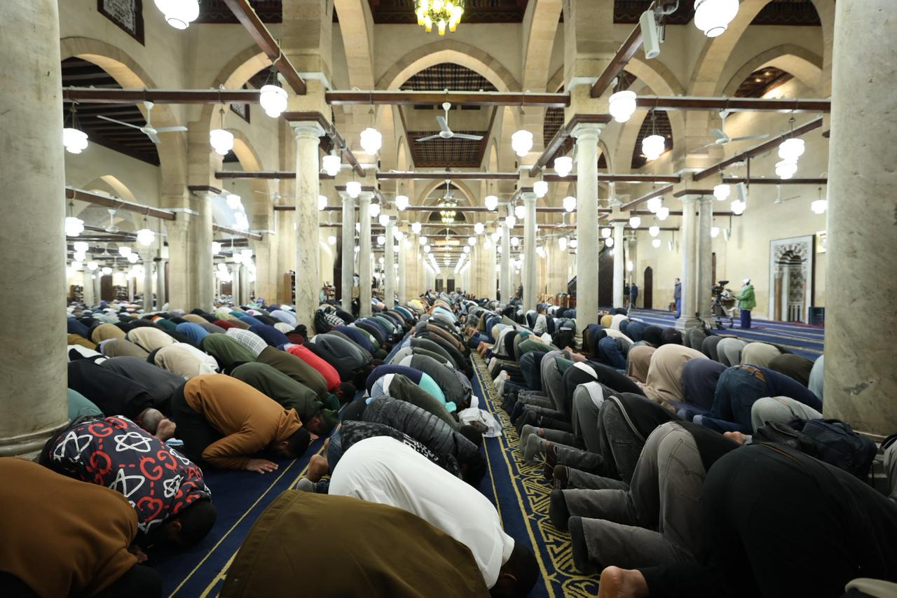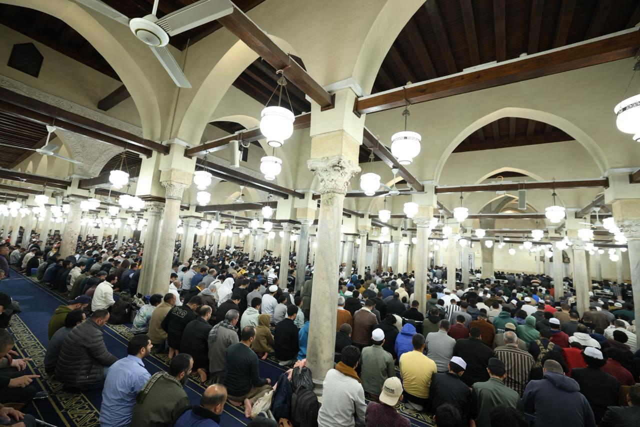 شهد الجامع الأزهر في الليلة الرابعة والعشرين من شهر رمضان المبارك توافدًا كبيرًا من جموع المصلين الذين ملأوا أروقته التاريخية وساحاته العامرة منذ وقت مبكر، في أجواء إيمانية مهيبة تعكس مكانة الجامع الأزهر كقبلةٍ للعلم والعبادة ووجهةٍ للمسلمين من مختلف دول العالم والمحافظات خلال شهر رمضان المبارك، حيث حرص المصلون على اغتنام هذه الليالي المباركة من العشر الأواخر، رجاءً لنفحات الرحمة والمغفرة والعتق من النيران.